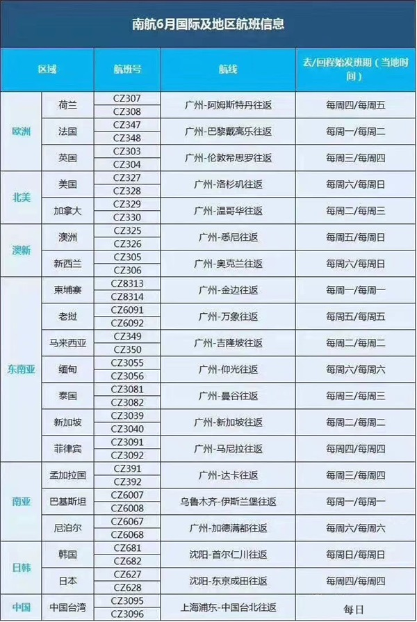 中国南方航空与厦门航空已经放出了他们六月份的航班计划,
